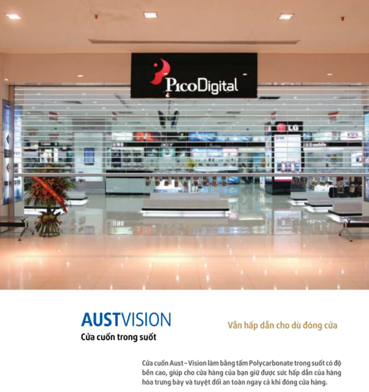 Mẫu Cửa Cuốn Trong Suốt Úc Polycatbonat Với Mẫu Cửa Cuốn này thường được các cửa hàng thời trang, showroom, siêu thị trưng bày, không những thu hút được người xem khi cửa hàng trong thời gian đóng cửa tuy trong suốt nhưng vẫn đảm bảo về các hàng hóa bên trong không bị mất trộm.